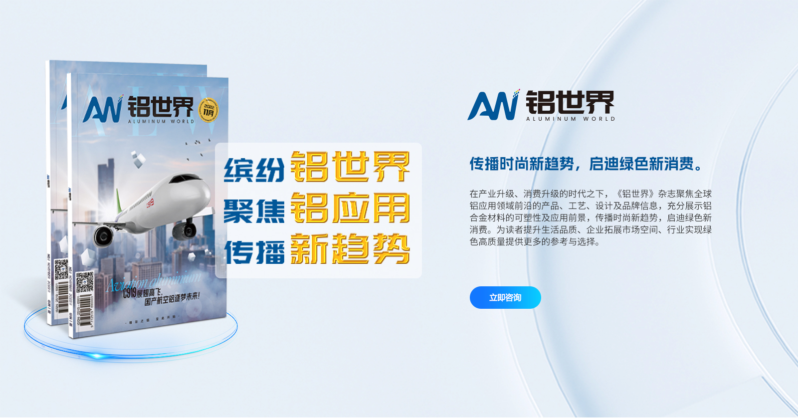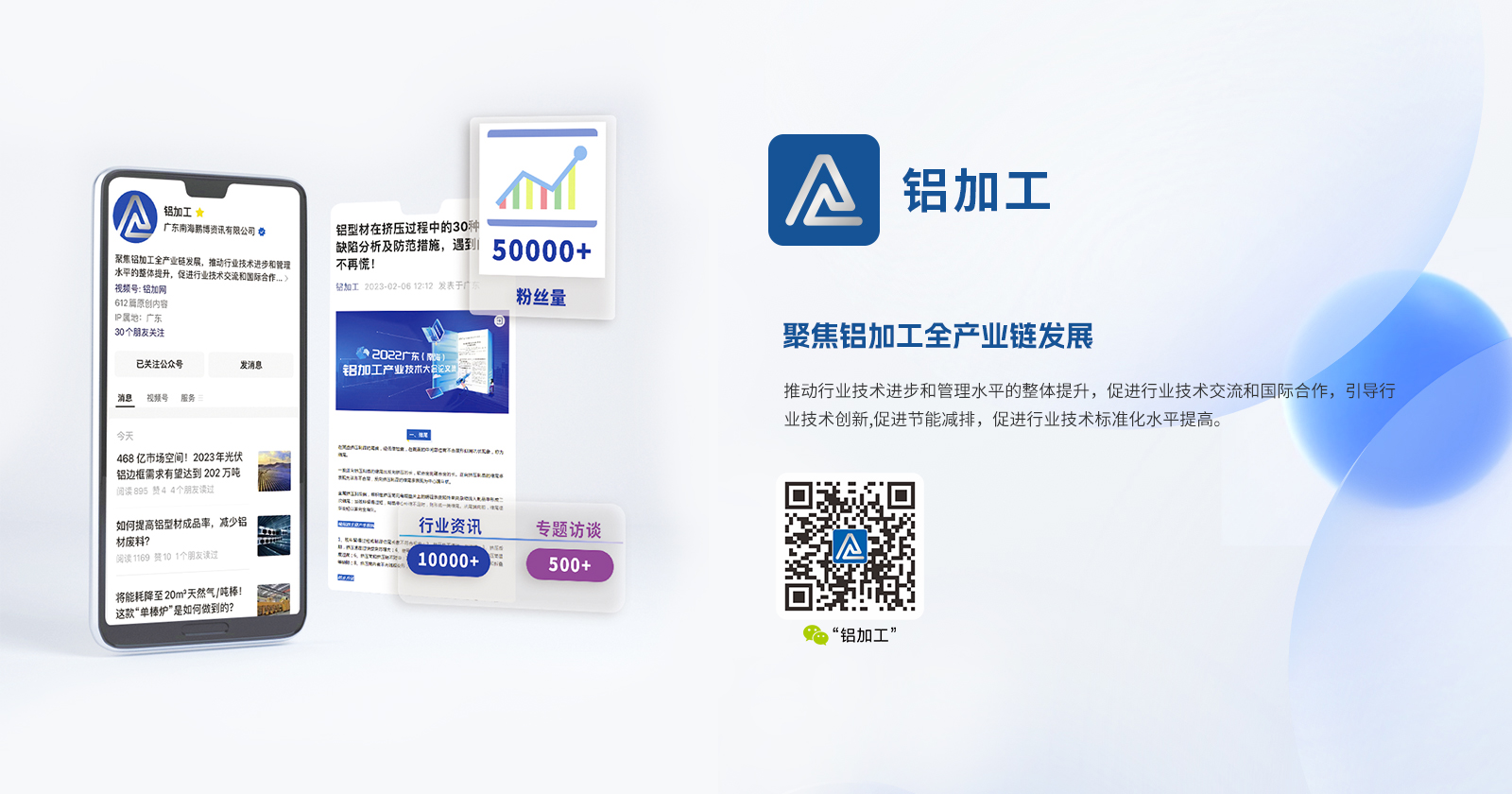 鋁加網(wǎng)(www.albiz.cn)是聞名鋁加工行業(yè)的垂直門戶網(wǎng)站,云聚鋁業(yè)新生態(tài),構(gòu)建鋁業(yè)新場景,以albiz.cn 網(wǎng)站為核心,以移動云端、鋁加工微信、鋁加網(wǎng)視頻號、《鋁型材專刊》和《鋁世界》雜志為載體,成為了鋁加工行業(yè)資訊和精準傳播的首選傳媒。鋁加網(wǎng),采集和發(fā)布全行業(yè)信息資訊,提供線上展覽、在線直播、短視頻、品牌策劃、品牌運營、品牌傳播等全方位的專業(yè)服務(wù)。